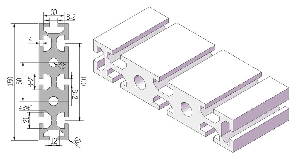 8mm槽寬的工業(yè)鋁型材系列