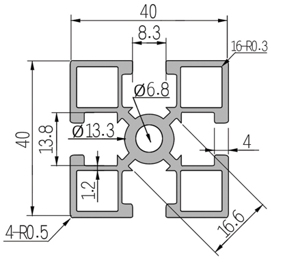 適用于應(yīng)力及強(qiáng)度較大的框架組合結(jié)構(gòu),它的外型采用圓角過渡,表面經(jīng)過陽極氧化處理,高雅美觀并抗腐蝕,它通常采用M8X20高強(qiáng)度專用螺栓加彈性扣件的內(nèi)部連接方式,堅(jiān)固而又可靠,是工業(yè)框架應(yīng)用最廣泛的型材之一。