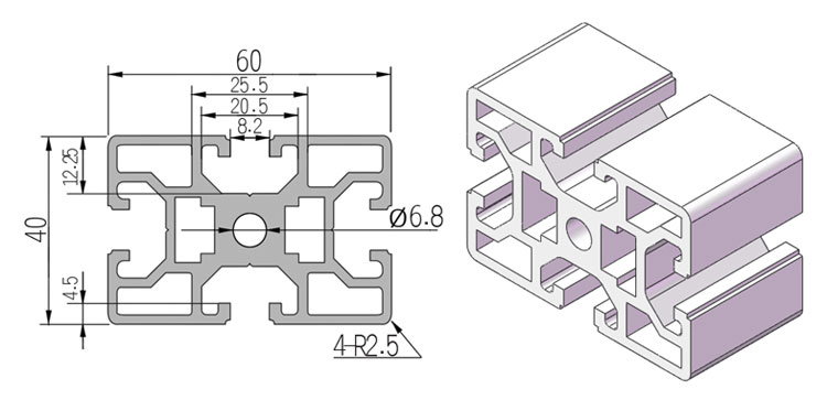 適用于應(yīng)力及強(qiáng)度較大的框架組合結(jié)構(gòu),它的外型采用圓角過(guò)渡,表面經(jīng)過(guò)陽(yáng)極氧化處理,高雅美觀并抗腐蝕,它通常采用M8X20高強(qiáng)度專用螺栓加彈性扣件的內(nèi)部連接方式,堅(jiān)固而又可靠,是工業(yè)框架應(yīng)用最廣泛的型材之一。