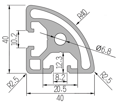 適用于應(yīng)力及強(qiáng)度較大的框架組合結(jié)構(gòu),它的外型采用圓角過(guò)渡,表面經(jīng)過(guò)陽(yáng)極氧化處理,高雅美觀并抗腐蝕,它通常采用M8X20高強(qiáng)度專用螺栓加彈性扣件的內(nèi)部連接方式,堅(jiān)固而又可靠,是工業(yè)框架應(yīng)用最廣泛的型材之一。