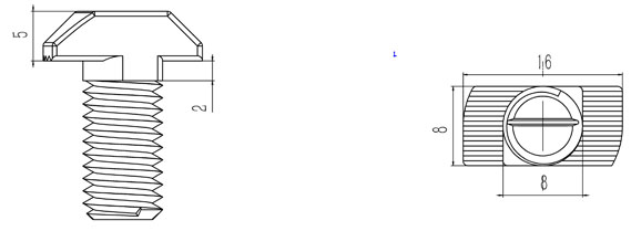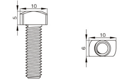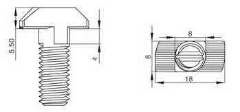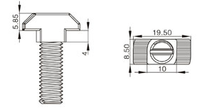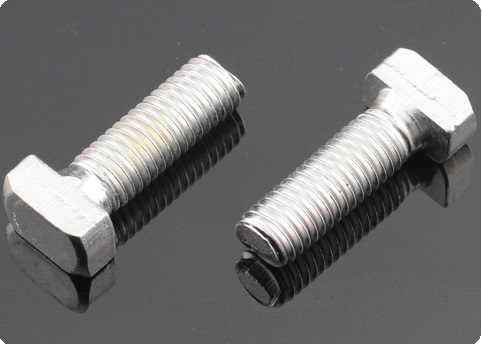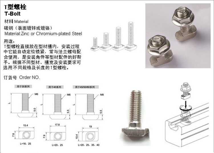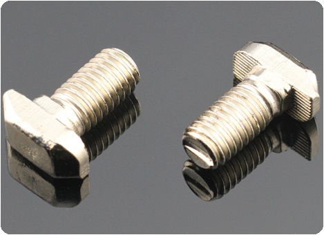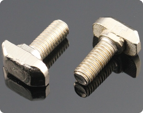 T型螺栓:又名錘頭螺栓,在裝配的時候可由型材外部直接放入槽內,旋轉90度即可自動鎖緊定位。安裝極為方便,是工業(yè)鋁型材系統(tǒng)中最為常用的配件之一。